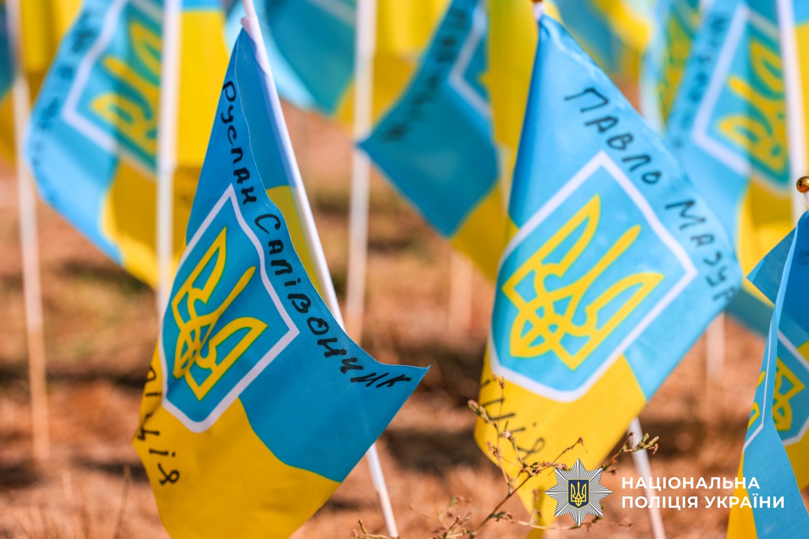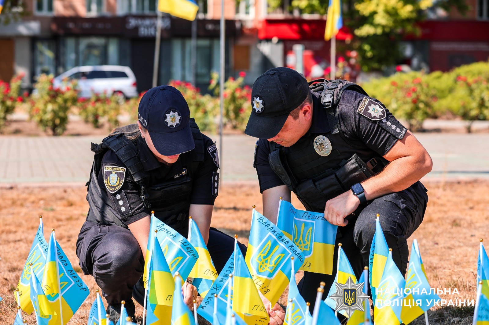 Працівники поліції прийшли до острівця пам’яті, аби додати прапорці з іменами та прізвищами своїх полеглих колег: Дениса Румеги, Олександра Пятуна, Олександра Козюри, Сергія Макарова, Андрія Тарчинського, Олександра Чехуна, Руслана Сторчеуса, Олега Вовченка, Олега Гребінського, Максима Жекова, Владислава Ковальова, Павла Мазура, Руслана Салівончика, Артема Шаригіна та Олега Пєшкова.