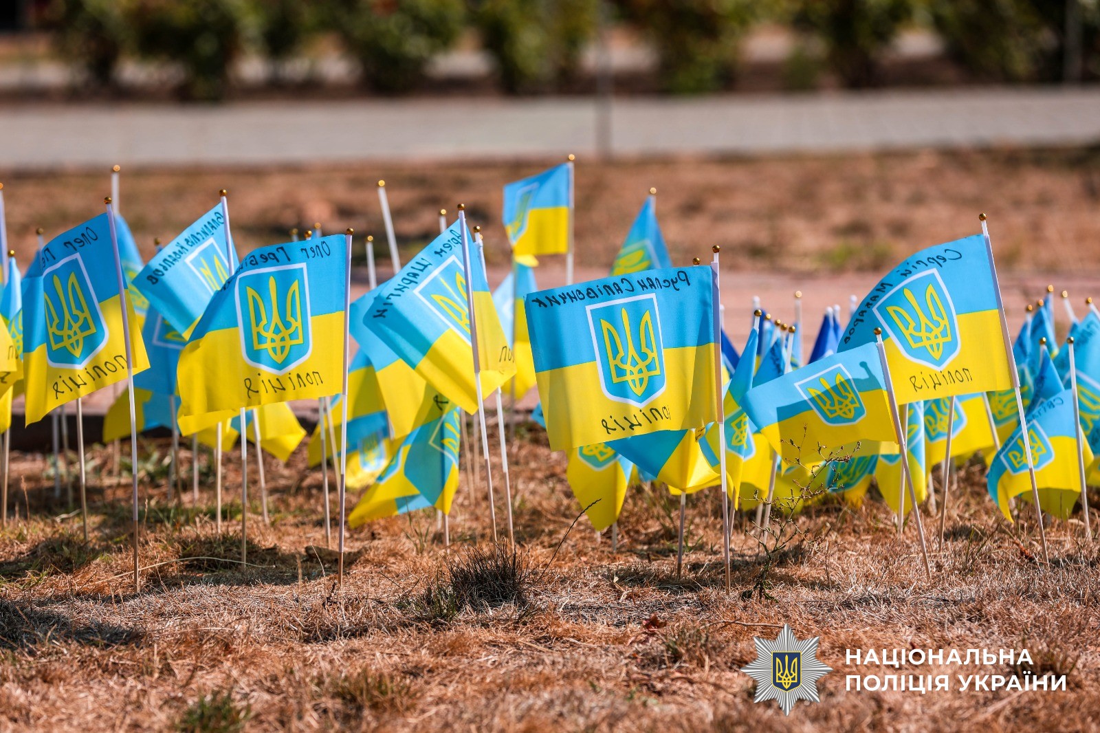 Починаючи з 2014 року, вони стали на захист України і віддали життя за свободу рідної землі: загинули під час виходу так званим «зеленим коридором» у районі Іловайська, від підступних обстрілів окупантів, під час несення служби на блокпостах та розмінування територій. Це не просто прапорці з іменами, за кожним із них – своя історія, життя людини, яка загинула за прагнення жити у вільній країні. Це місце завжди нагадуватиме про подвиги загиблих та про те, яка важка ціна нашої свободи. Нині кожен поліцейський продовжує боротися, протистояти злочинності та російським окупантам, кожен на своєму місці наближати перемогу.