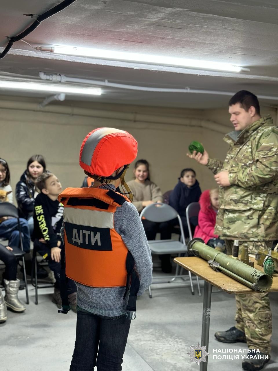 Через складну безпекову ситуацію заняття проводили в укритті. Основні правила безпеки херсонські діти знають, адже пережили окупацію та нині живуть під ворожими обстрілами. Але цього разу поліцейські провели тренувально-евакуаційні дії, відтворили різні ситуації, в яких можуть опинитися діти на вулиці. Маленькі херсонці одягали засоби захисту – каски та бронежилети.