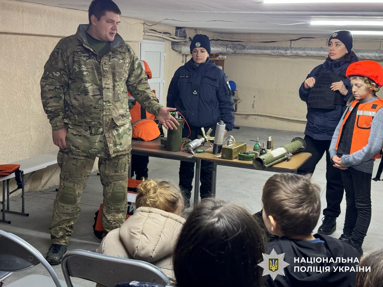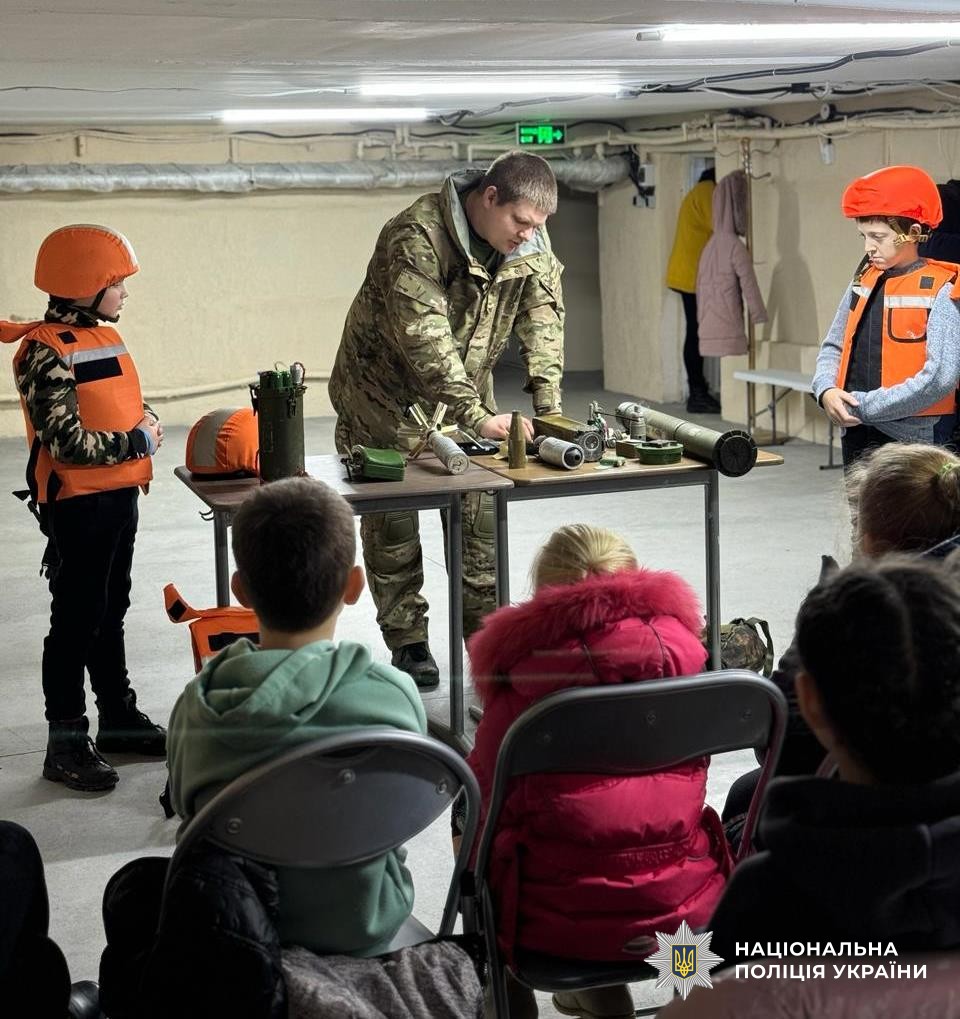 Працівник вибухотехнічного відділу продемонстрував дітям макети вибухонебезпечних предметів та розповів про смертельну небезпеку, яку вони становлять. Акцентував увагу дітей, що після обстрілів ні в якому разі не можна брати до рук небезпечні знахідки, а негайно повідомити про подію дорослим чи зателефонувати на «102» або «101».