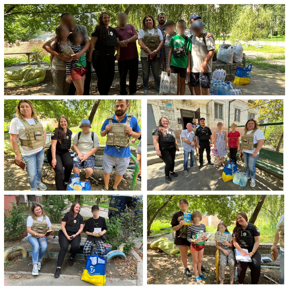 Працівники ювенальної превенції спільно з волонтерами мобільного центру надання допомоги врятованим приїхали до мікрорайону «Корабел», який сильно постраждав від підтоплення внаслідок підриву росіянами Каховської ГЕС та потерпає від постійних ворожих обстрілів.