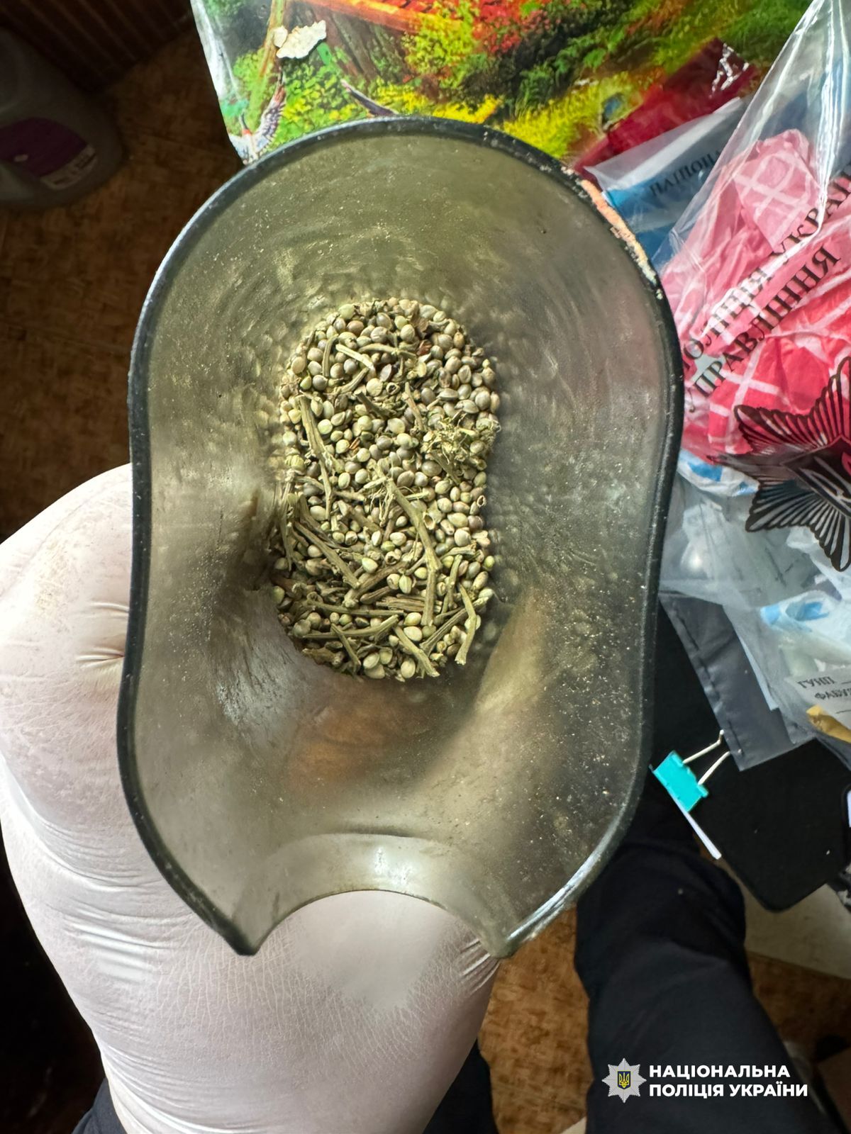 За місцем проживання фігурантки поліцейські провели санкціонований обшук. Правоохоронці вилучили отриманні злочинним шляхом гроші, канабіс вагою близько 450 г, пігулки «Метафін ІС», насіння канабісу, електронні ваги, мобільні телефони.
