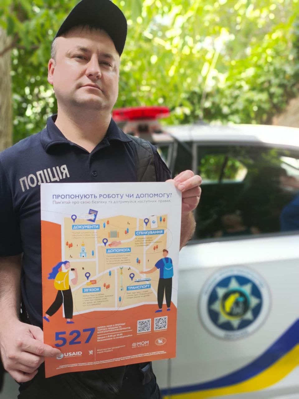 В Херсоні співробітники сектору протидії домашньому насильству спільно з працівниками Херсонської міської військової адміністрації та волонтерами проводять інформаційну кампанію, аби підвищити обізнаність населення щодо проблеми торгівлі людьми, убезпечити громадян від цього явища та закликати не замовчувати такі факти.