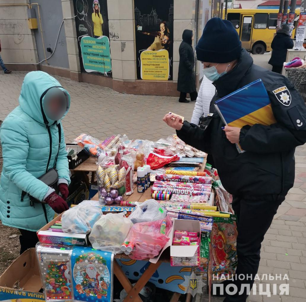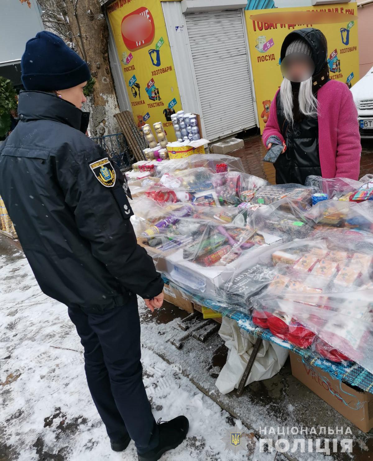 Щоб не допустити трагічних випадків під час використання піротехнічних виробів, у Херсоні та Скадовську дільничні офіцери поліції провели профілактичні рейди у місцях можливої реалізації піротехнічної продукції: на ринках, біля пішохідних переходів та зупинок, у торгівельних закладах.