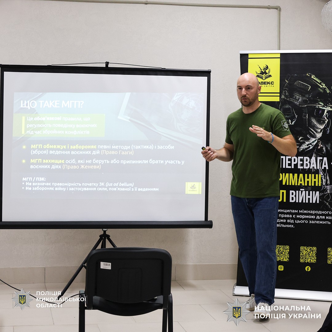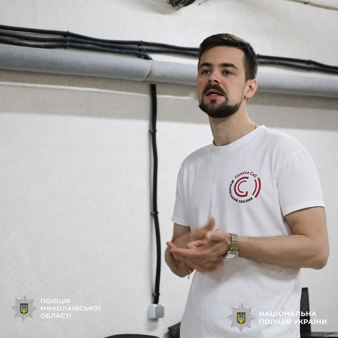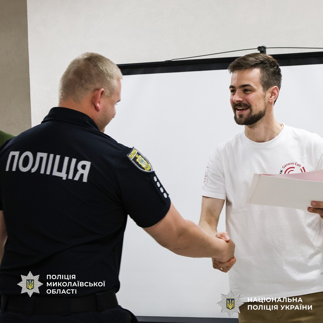 З метою посилення обізнаності правоохоронців щодо стандартів міжнародного гуманітарного права та його застосування під час виконання службових обов’язків в умовах збройного конфлікту для поліцейських Миколаївської та Херсонської областей організували дводенний тренінг експерти Міжнародної гуманітарної організації «Женевський Заклик».