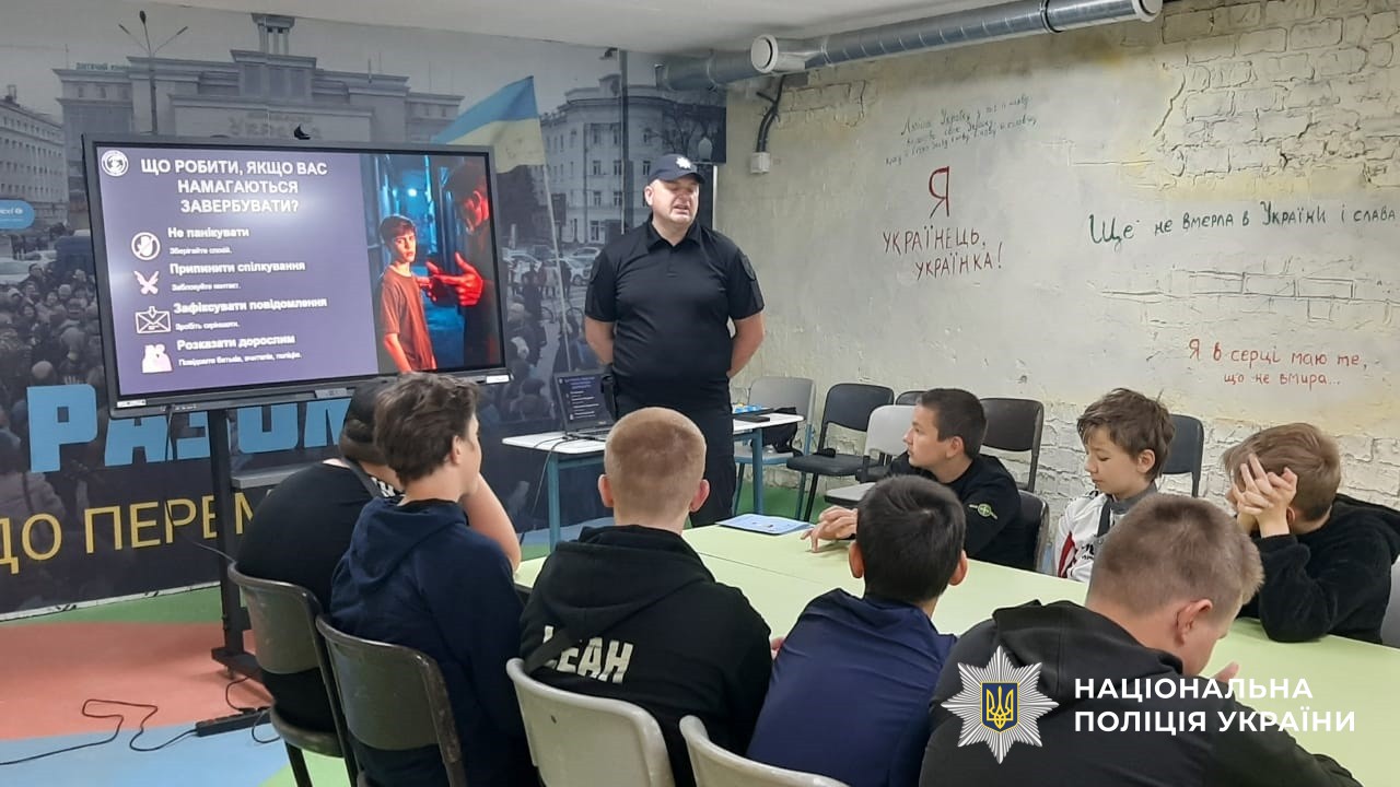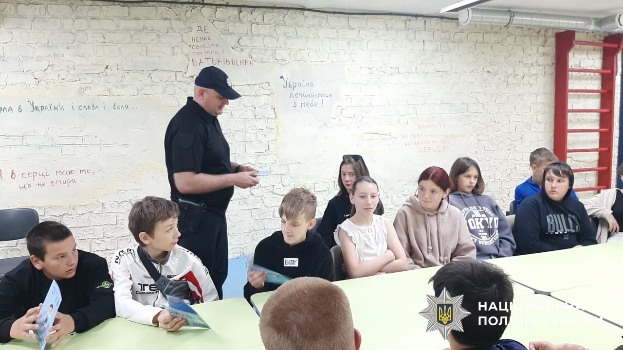 Окрема увага – протидії втягненню дітей у диверсійну діяльність. Поліцейський розповів, як ворог може використовувати Інтернет для вербування. Показав учням приклади підозрілих повідомлень, пояснив, що не варто передавати інформацію стороннім людям, і куди звертатися у разі сумнівних контактів. Діти отримали інформаційні пам’ятки, в яких вказано алгоритми дій у різних небезпечних ситуаціях.