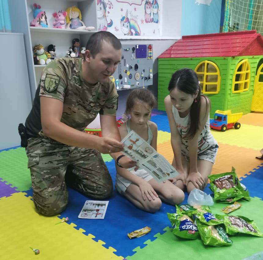 В Херсоні працівники ювенальної превенції відвідали дитячу кімнату, куди батьки приводять діток задля спілкування, ігор та розвиваючих занять. Там хлопчики та дівчата мають змогу відволіктися, цікаво провести дозвілля, адже через обстріли не можуть грати на майданчиках. Тож ювенали розповіли дітям життєво важливі правила мінної безпеки: що не можна наближатися та брати до рук підозрілі предмети, залишки від снарядів, неодмінно повідомляти про такі знахідки дорослих. Також поліцейські показали, як виглядають боєприпаси та міни, нагадали правила поведінки під час обстрілу, де можна сховатись під час ворожої атаки.