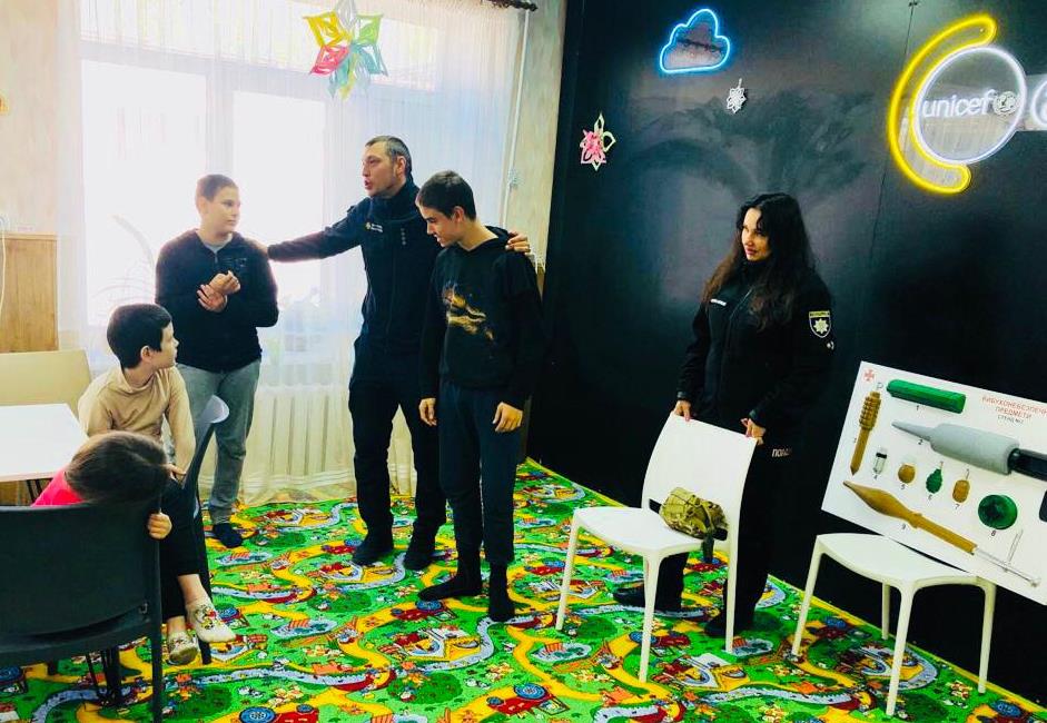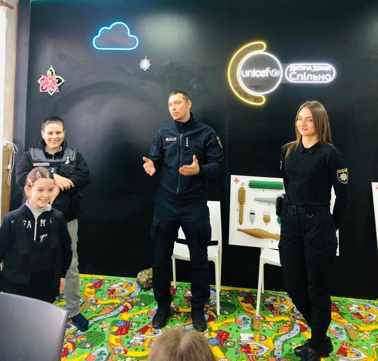 Ювенальні поліцейські спільно з працівниками ДСНС відвідали дитячу кімнату, створену в одній зі шкіл Херсона дитячим фондом ООН (ЮНІСЕФ). Цей простір відкритий для усіх діток та їх батьків, там проводяться майстер-класи, діти можуть почитати, пограти в іграшки, з малечею працюють вихователі, проводяться корисні зустрічі та цікаві вікторини. Запрошують і психологів, які навчають дітей методам самозаспокоєння в разі небезпеки.