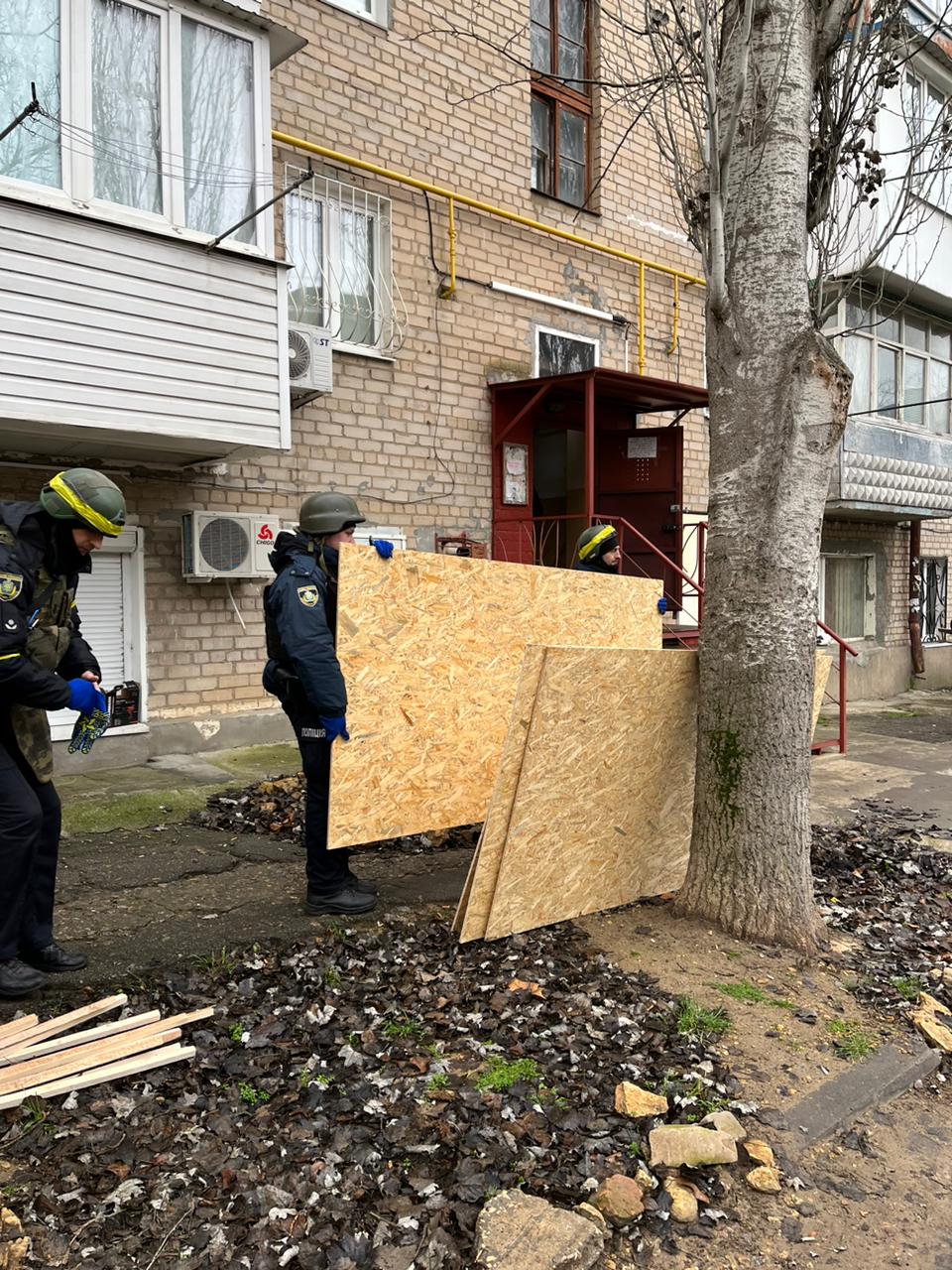 Після масштабних обстрілів міста Херсона, які не вщухають і донині, які забрали життя людей, покалічили десятки громадян, лишили по собі руйнівні наслідки для інфраструктури міста, працівники поліції допомагають громадянам долати наслідки обстрілів квартир, будинків та убезпечувати помешкання.