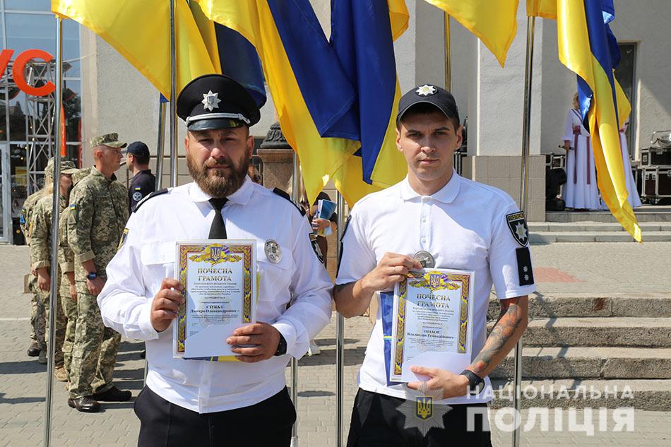 Заходи закінчилися урочистим нагородженням, де двоє працівників обласного главку поліції отримали «Почесні грамоти» від керівництва міської влади.