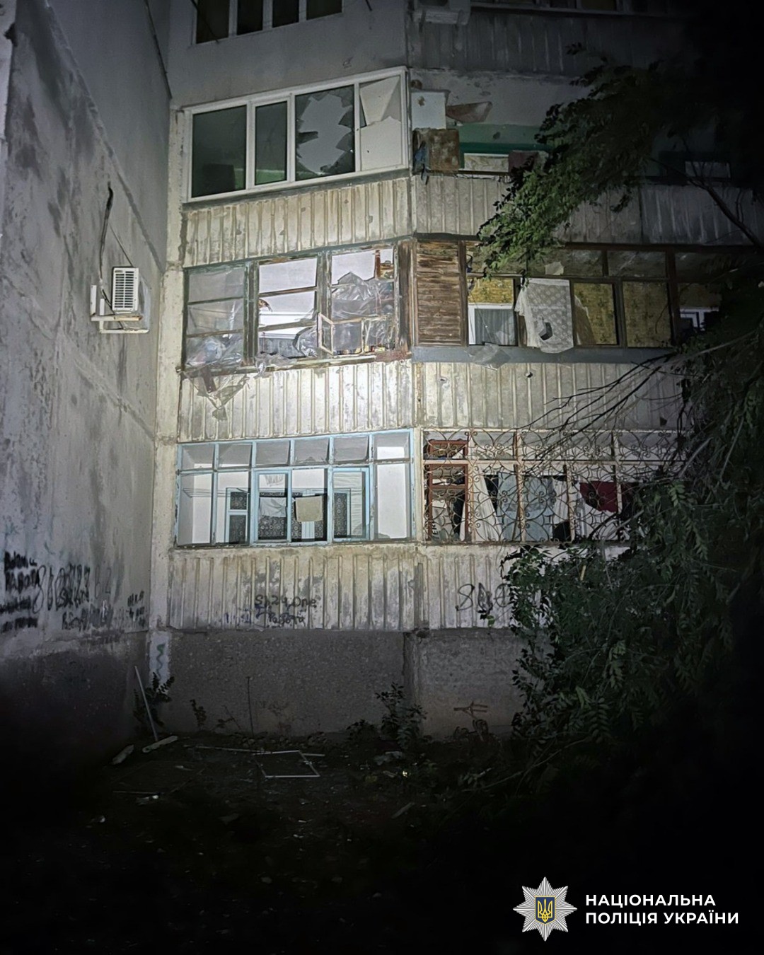 Вже нинішньої доби одразу після опівночі під ворожий артилерійський обстріл потрапив мікрорайон «Таврійський». Внаслідок ударів пошкоджено чотири багатоповерхові житлові будинки. Також травмована 85-річна жінка. Її госпіталізували з діагнозом мінно-вибухова травма, контузія та забій ноги.