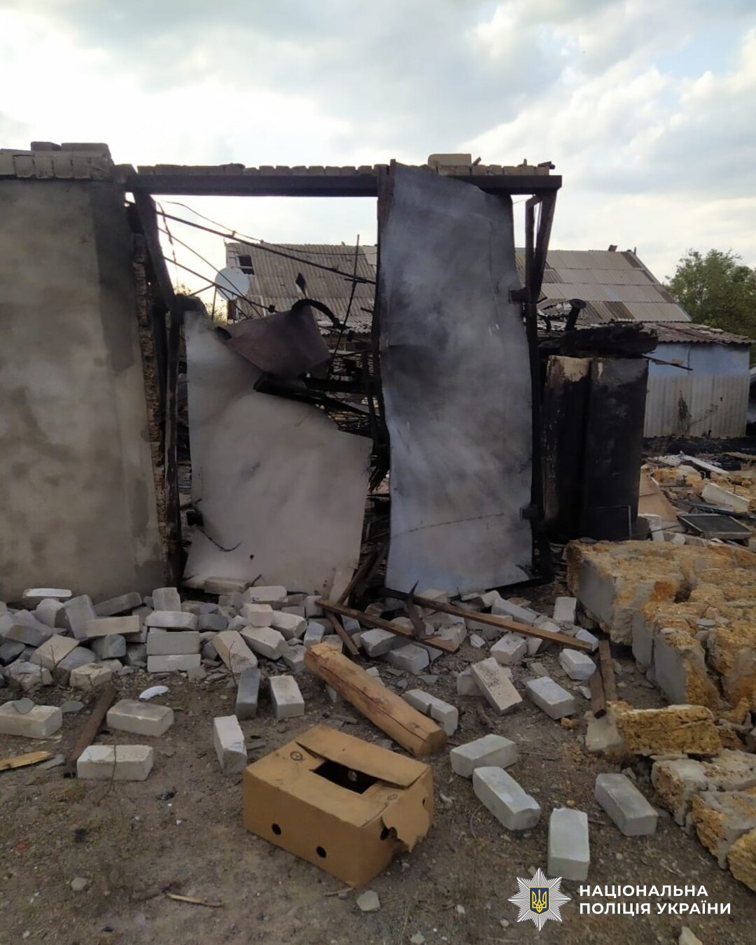 Крім цього, у Бериславі після скиду боєприпасу сталося займання приватного домоволодіння. Допомагала гасити пожежу 49-річна місцева жителька. В результаті жінка отруїлася чадним газом та померла.