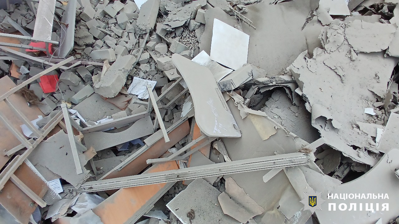 В результаті удару фактично знищено будівлю школи, пошкоджено дитячий садок та щонайменше 14 багатоповерхівок, а також п’ять автомобілів.