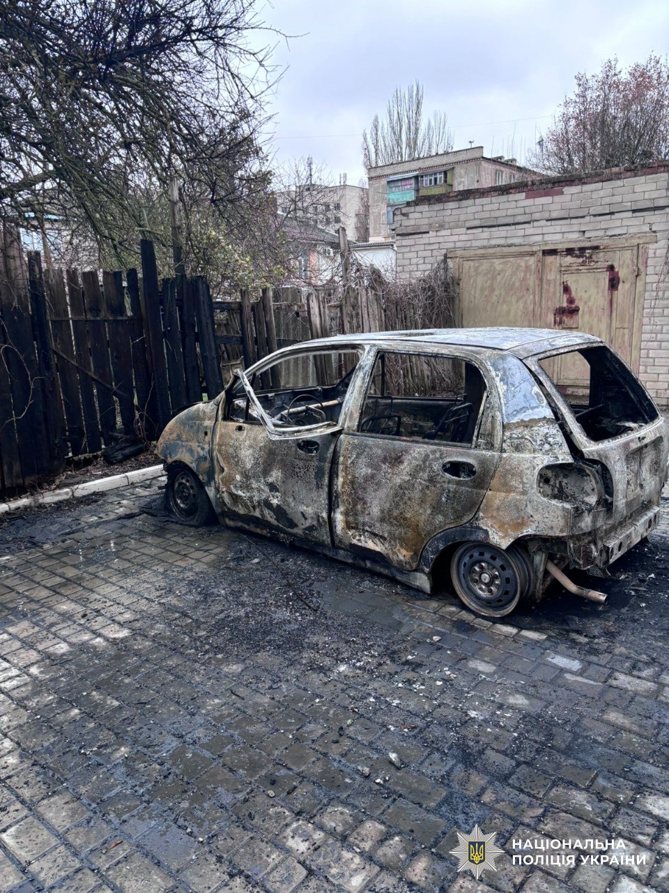 Невдовзі з БпЛА військові рф також у Дніпровському районі атакували автомобіль. Внаслідок вибуху боєприпасу мінно-вибухову травму та осколкове поранення руки отримав 54-річний чоловік, транспортний засіб зазнав механічних пошкоджень. Також росіяни спрямували дрон-камікадзе в напрямку службового автомобіля патрульної поліції. В результаті транспортний засіб був пошкоджений осколками. На щастя, працівники поліції не постраждали.