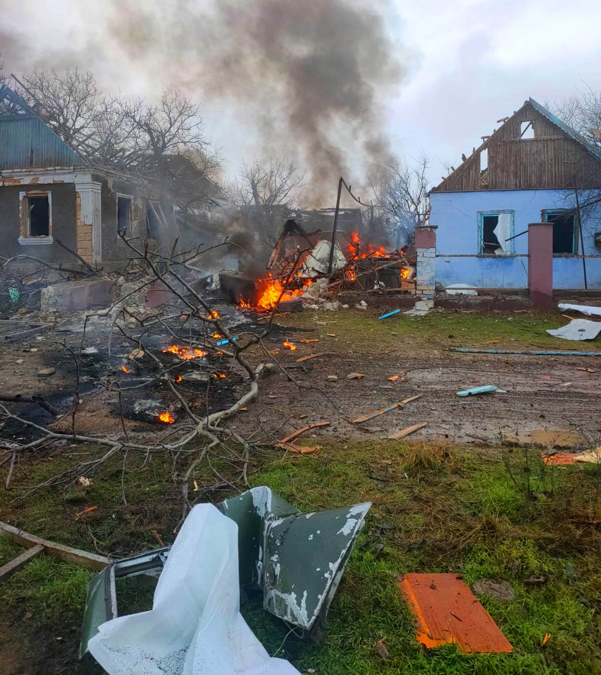 У Дніпровському районі снарядами пошкоджено приватні будинки, деякі з них зруйновані вщент. Також постраждали квартири у багатоповерхівках.