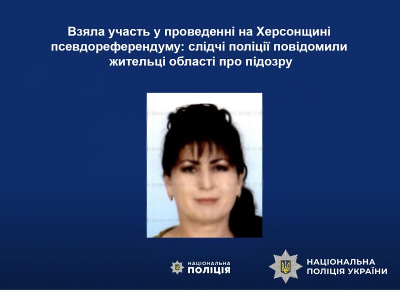 Як розповів заступник начальника слідчого управління поліції Херсонщини Чермен Тускаєв, слідчі встановили, що 53-річна фігурантка добровільно взяла участь в організації та проведенні незаконного референдуму на тимчасово окупованій території, а саме – у Великій Кардашинці Скадовського району Херсонської області.