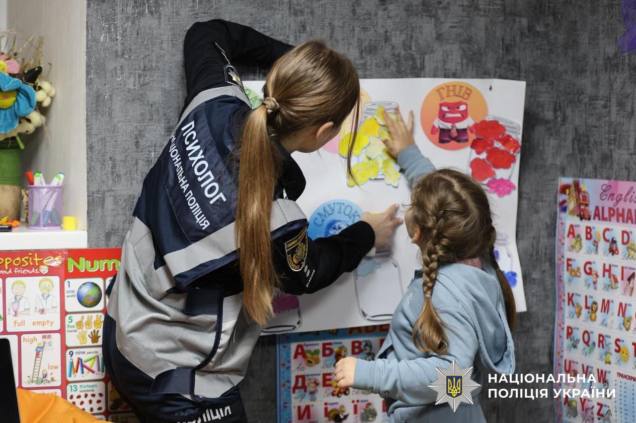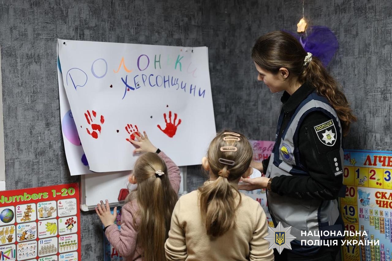 В освітньому центрі для дітей «Змістовно» психологині відділу психологічного забезпечення поліції Херсонщини провели арт-терапевтичний захід «Емоції в моєму житті» для дітей поліцейських, зокрема й тих, чиї батьки отримали поранення під час служби. Такі зустрічі покликані підтримати малечу, допомогти їм краще розуміти власні переживання та впоратися з емоційним напруженням, спричиненим воєнним станом.