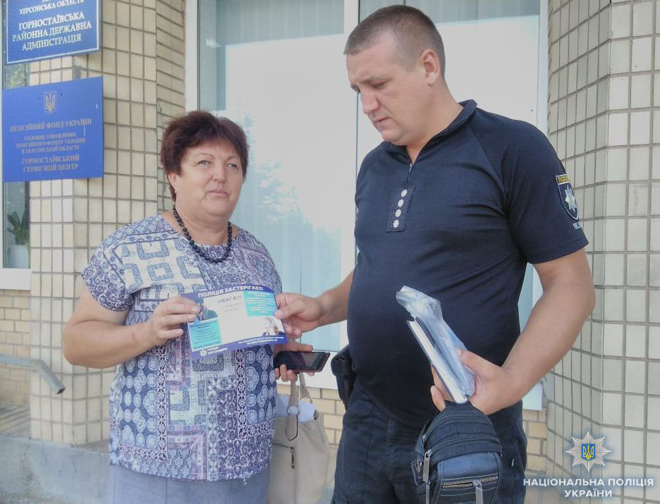 До складу Горностаївської селищної ОТГ входять 18 населених пунктів, у яких проживають понад 13 тисяч громадян. До Костянтинівської сільської ОТГ входять 9 населених пунктів, де проживають майже 5000 людей. Щоб максимально убезпечити жителів сіл та селищ від шахрайських дій, поінформувати максимальну кількість населення про різні види шахрайства, дільничні передали головам ОТГ пам’ятки «Поліція застерігає» для поширення серед мешканців. Буклети містять поради та корисну інформацію, яка може вберегти заощадження від злочинних посягань шахраїв.