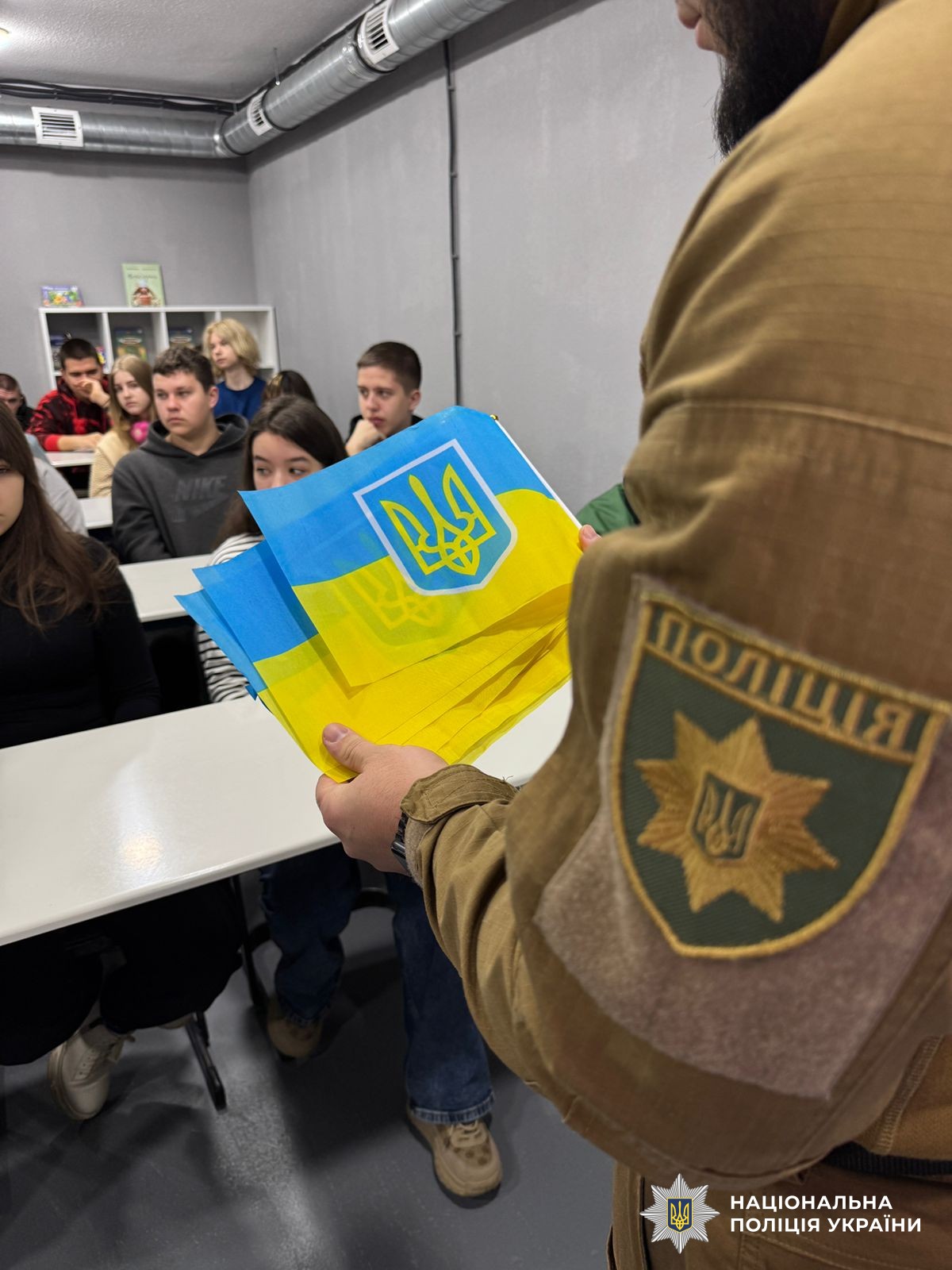 Єдина країна - єдиний народ: на Херсонщині ювенальні поліцейські провели для учнів патріотичний захід до Дня Соборності України