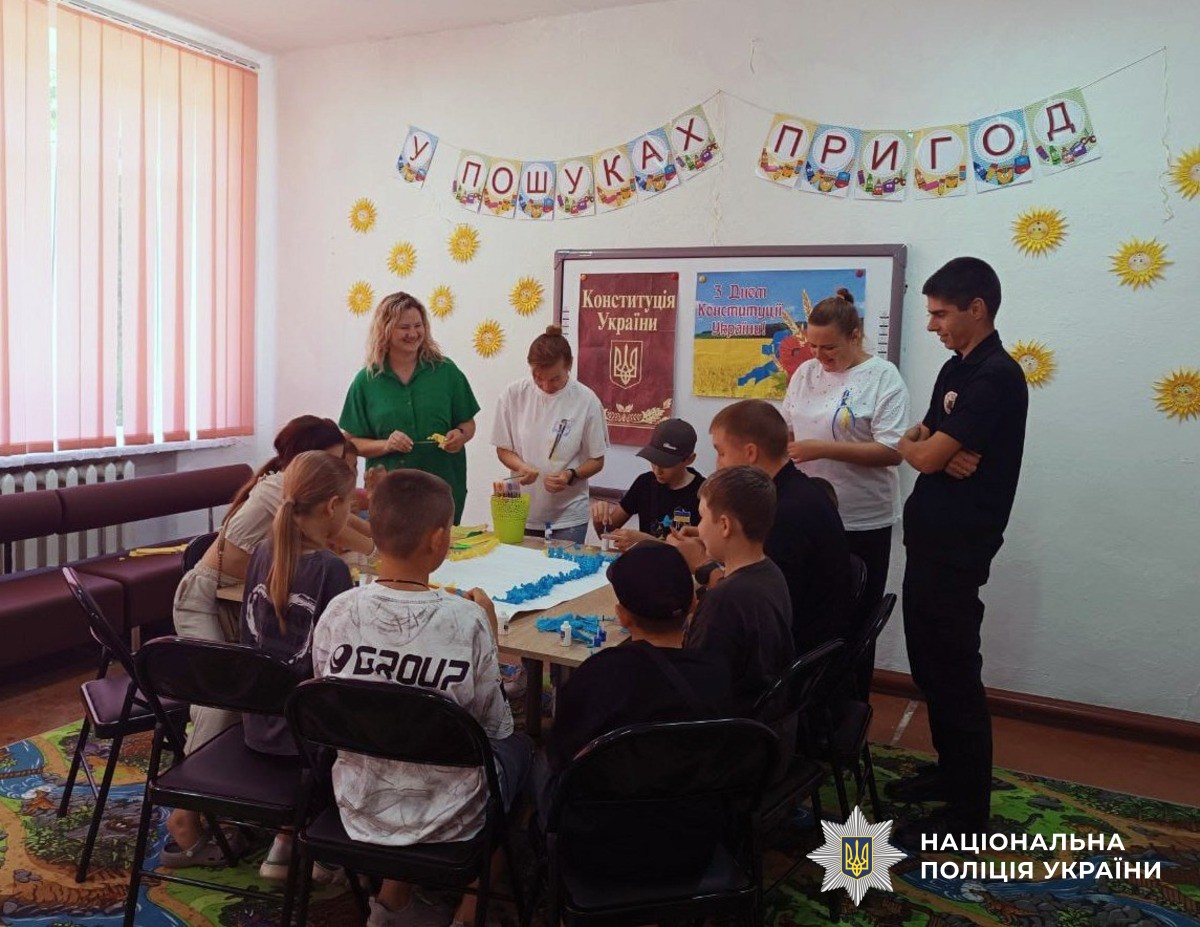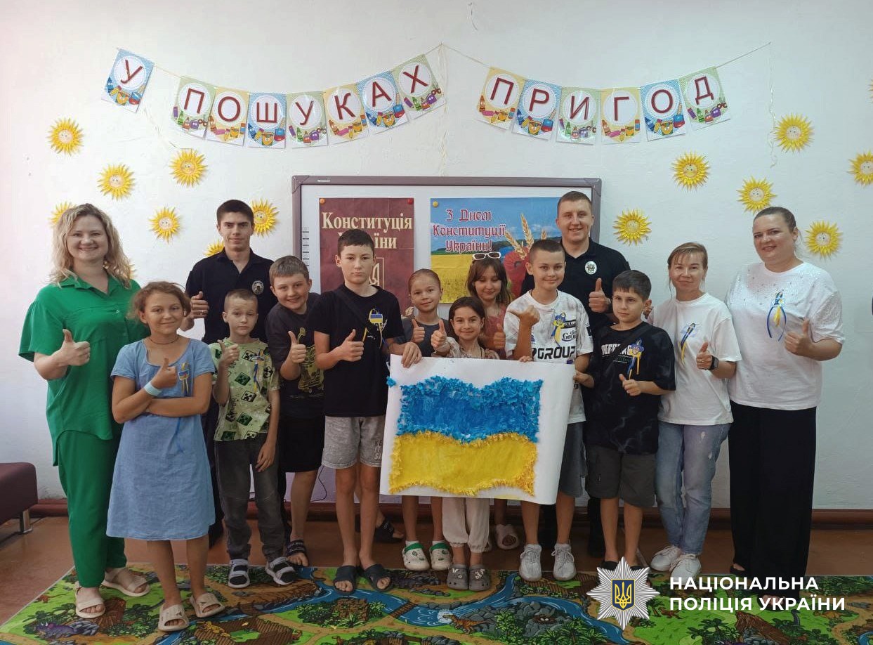 До Дня Конституції України працівники ювенальної превенції поліції Херсонщини організовують для дітей пізнавальні заходи. Так, у Борозенській територіальні громаді спільно з поліцейським офіцером громади, психологом і представниками служби у справах дітей провели лекцію та вікторину. Хлопчикам і дівчаткам розказали про Конституцію та її значення, пояснили їх права та обов’язки. Також разом створили паперовий прапор України та згадали захисників і захисниць, які зараз виборюють незалежність нашої країни.