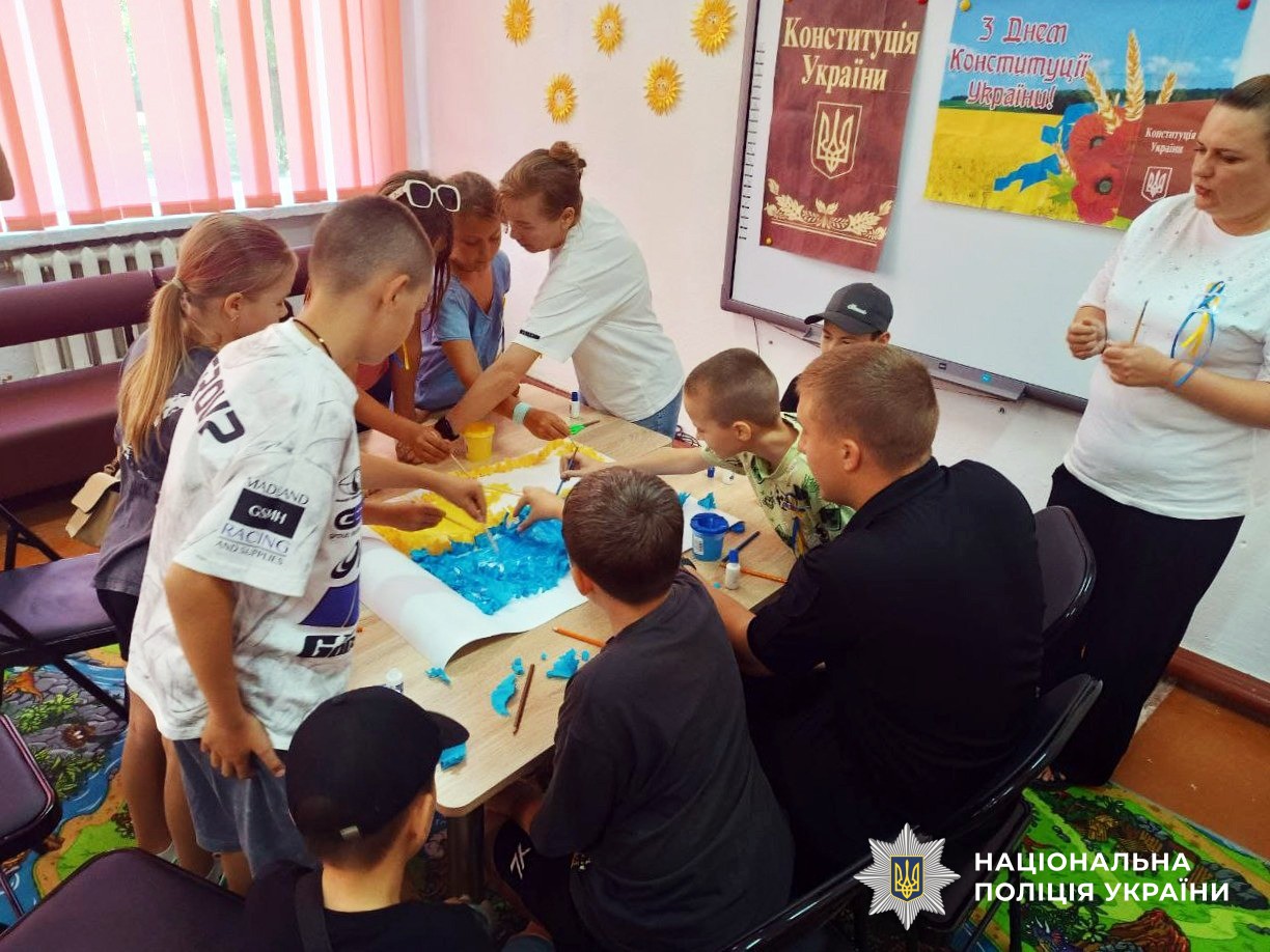Створювали власну версію шевронів і діти з Великої Олександрівки. Там ювенальні поліцейські спільно з представниками громадської організації «Поруч» та благодійного фонду «Карітас України» теж організували для юних жителів громади цікаве дозвілля.