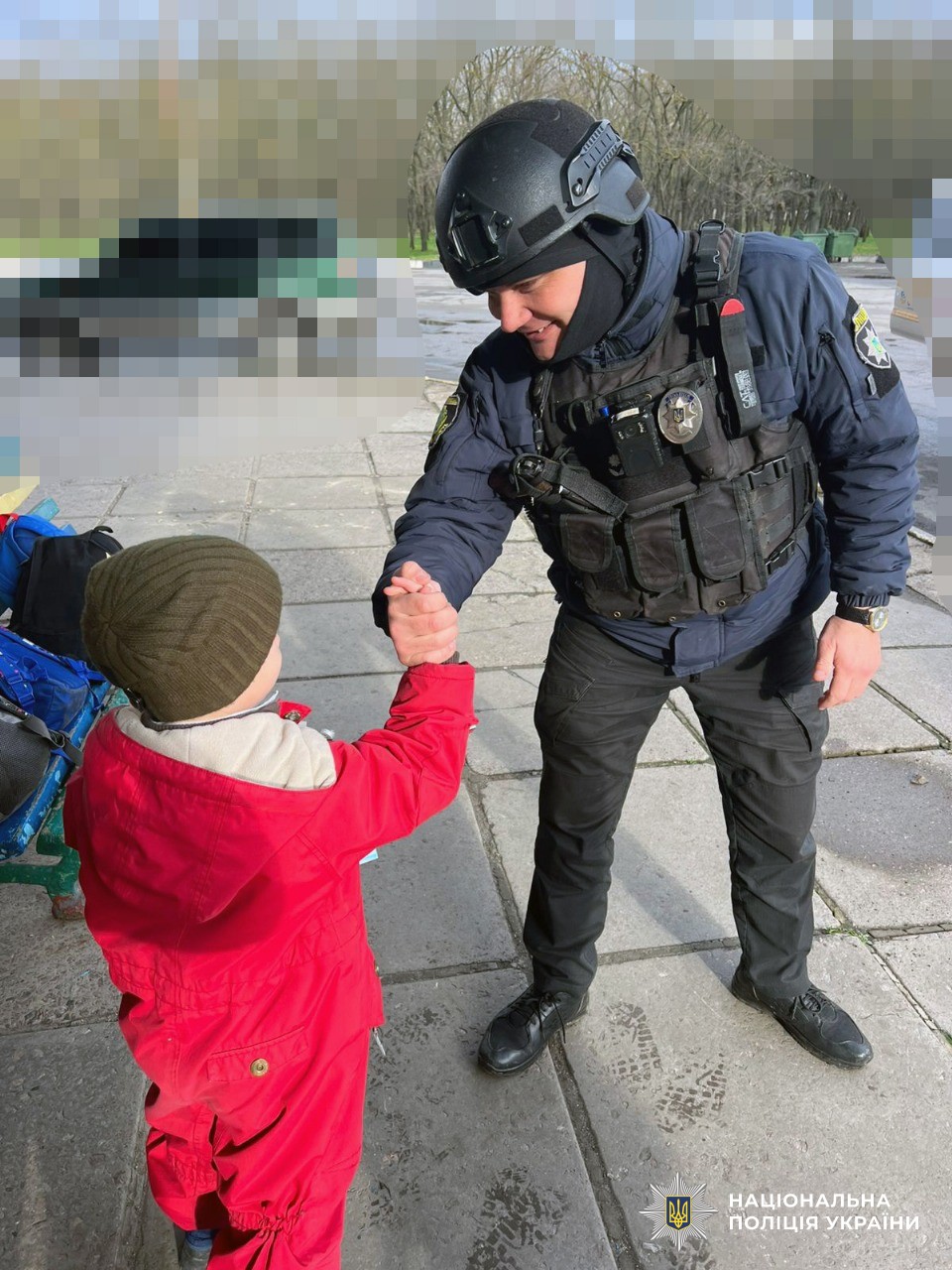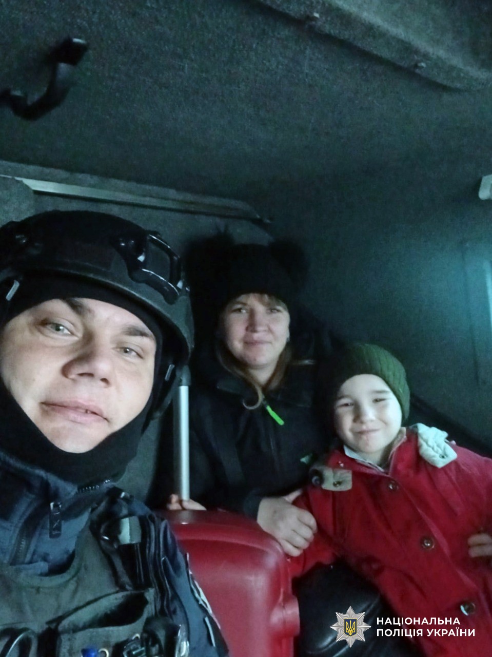 У кварталі, де мешкала сім’я, давно немає світла і зв’язку. Ворожі дрони цілодобово кружляють над будинками, вишукуючи людей і автотранспорт. А житлові будинки й розташовані поруч об’єкти критичної інфраструктури російські війська обстрілюють із реактивної та ствольної артилерії. Жінка розповіла поліцейським, як одного дня її маленький син вийшов у двір погратися і вони не помітили, як над їхнім будинком завис ворожий дрон. Хлопчику довелося тікати, рятуючись від смертельної загрози. З кожним тижнем обстріли посилювалися, а вийти з дому навіть за продуктами ставало дедалі небезпечніше. Саме тоді мати зважилася на евакуацію, аби вберегти сина.