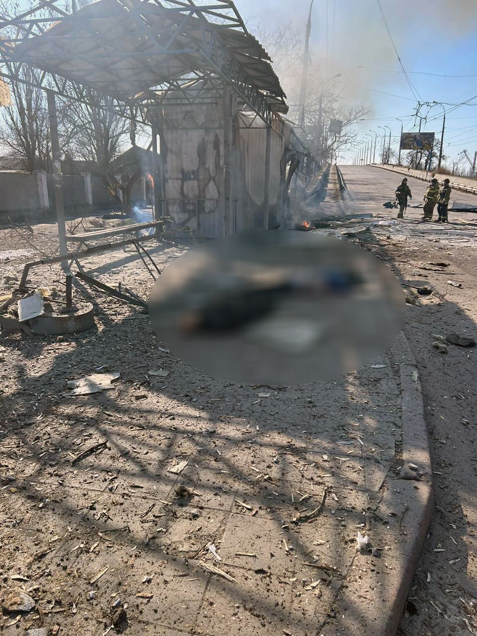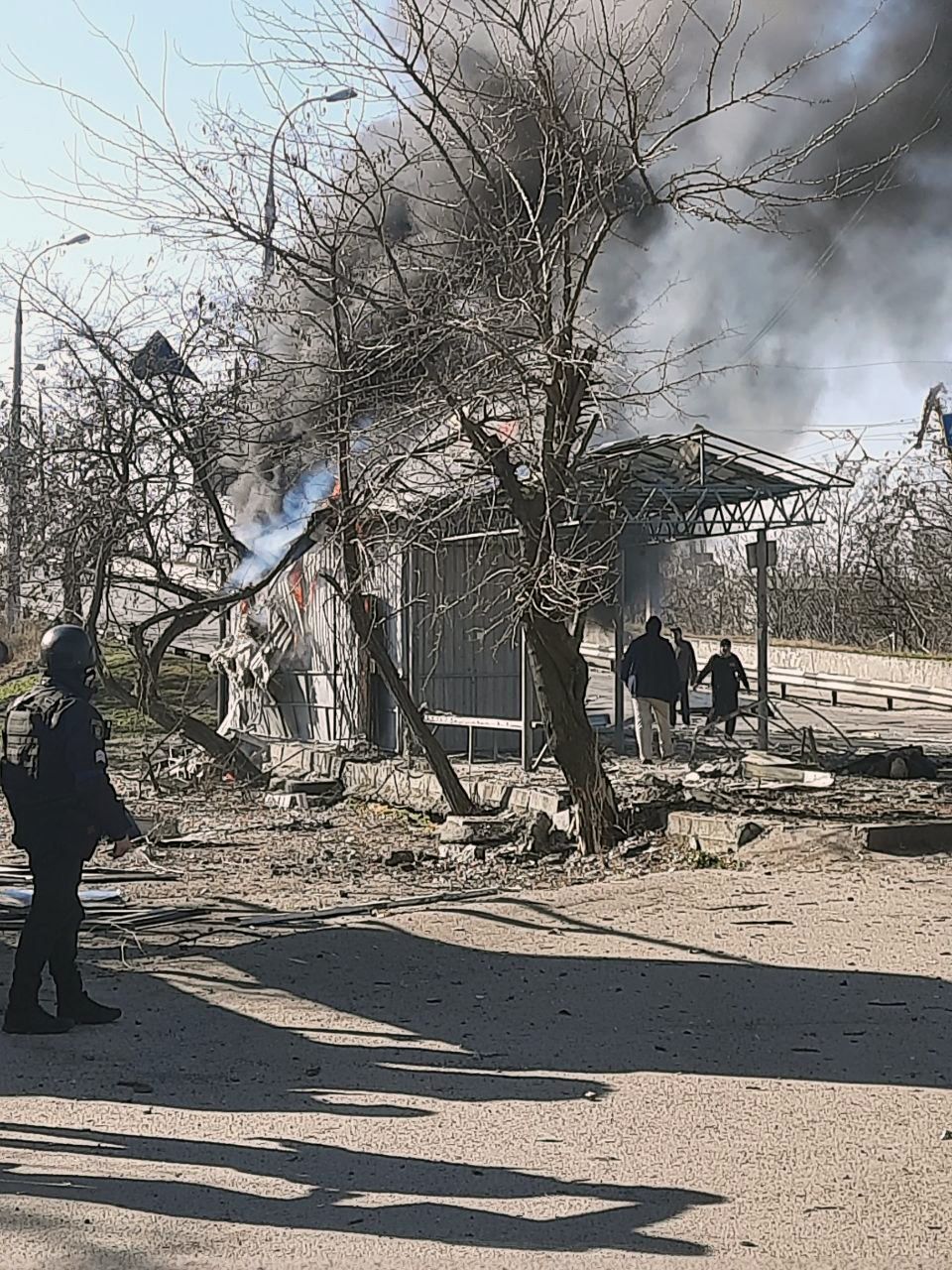 На місці трагедії працювала слідчо-оперативна група, вибухотехніки, співробітники ДСНС. Під час огляду місця злочину обстріл продовжився, постраждалих серед поліцейських та рятувальників немає.