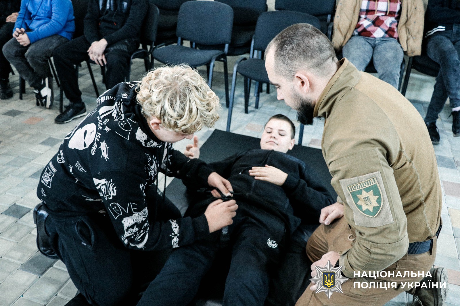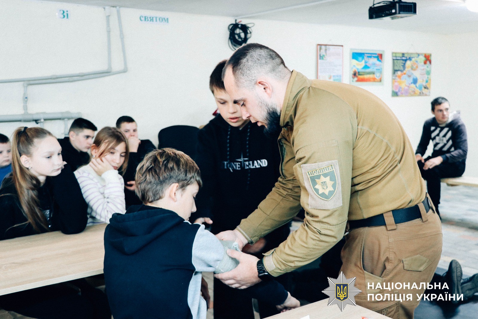 Правоохоронці наголосили підліткам, що надавати допомогу постраждалим людям потрібно лише за умови, що це безпечно для них самих, бо пріоритет – це власна безпека. Також нагадали загальні правила поведінки під час обстрілів та сигналу повітряної тривоги.